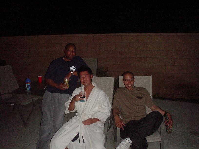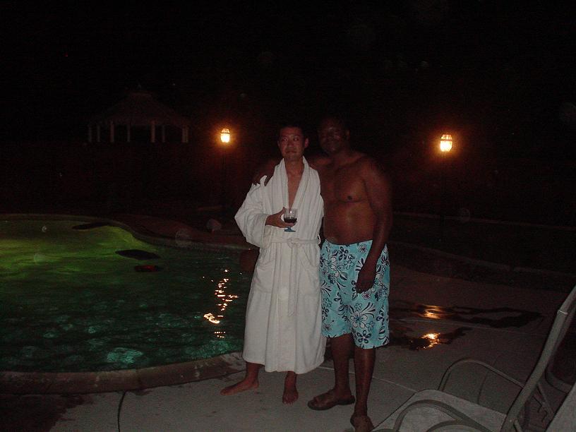 家に帰ってくるとおっさんどもが「出来上がった」状態でくつろいでいました。僕もいいものが見れたのでついつい彼らと一緒にビールを頂くと、気づいたらいつの間にかプールの中にいました。。。。