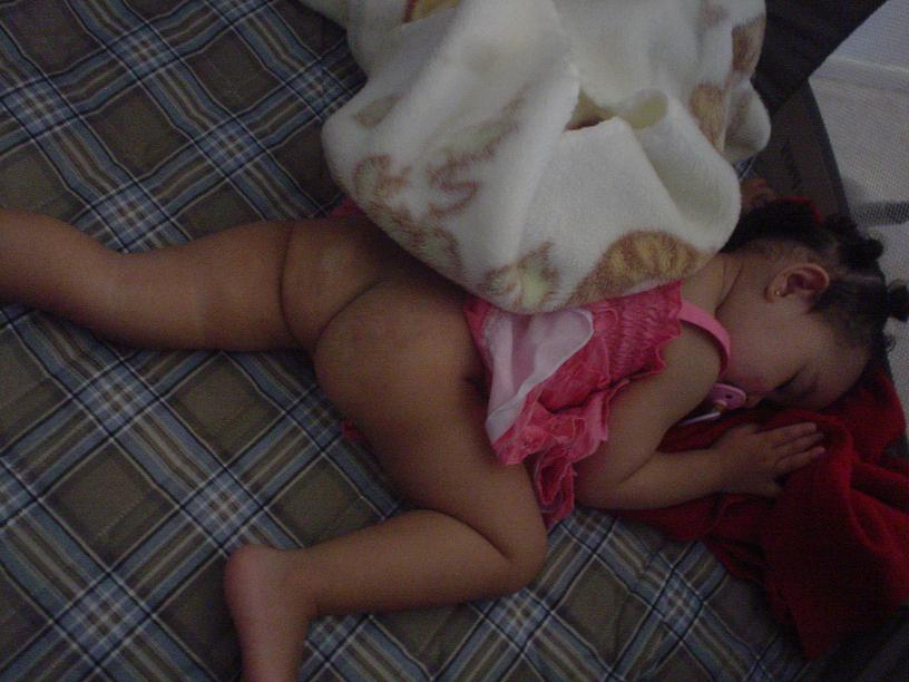 そしてとうとうオムツを取ってそのまま寝てしまいました。自慢のお尻を見せちゃって。将来この写真をジェイドに見せてあげたいです。