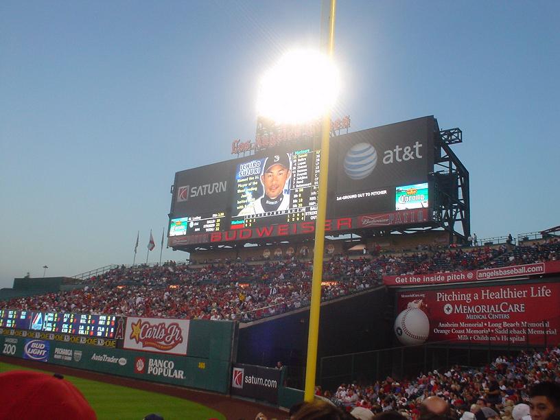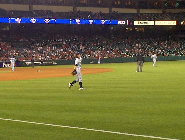 この日はイチロー、城島ともに大活躍。イチローはめったに出ないホームランまで飛び出し超興奮していました。地元エンゼルスファンにも囲まれながらも僕とアーニー、そして他の日本人ファンと共に叫んだ「イチロー」コールはいい思い出になりました。僕はなるべく「鈴木君~」とか普通の人が言わなそうなコールをしてイチローを振り向かせようとしましたが無理でした。逆に周りの人に変な目で見られました。