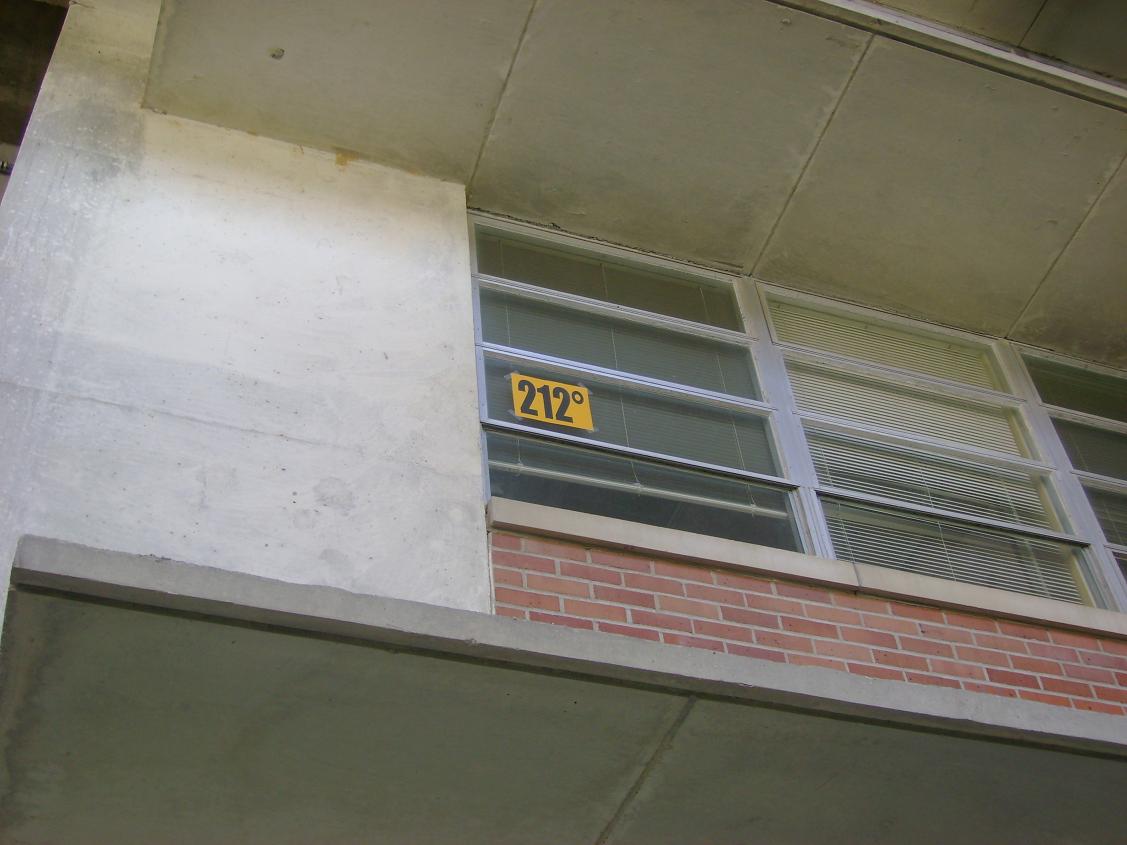 始めはトレーニングルームにも貼られていたこの謎の212度。どうやらアスレチック学部が今学期から掲げたモットーらしく、「心の中にあるスポーツに対する闘争心をもって、体内にある水分を沸騰させるくらいまで燃やせ」ということらしいです。